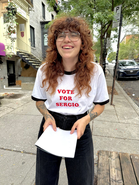 Checking out item is only to reserve your size and language of choice. Quantity limited to one per person. You must provide proof of a minimum $40 donation to the campaign of Sergio (link below) upon pick-up in order to receive item.